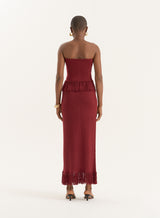 Burgundy Tassel Trim Knitted Maxi Skirt- Gabby