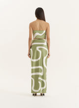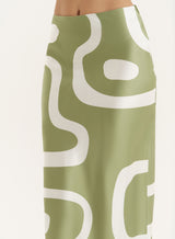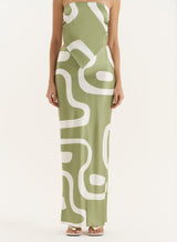 Adding a pop of colour and detail to your holiday wear, the Iris satin skirt effortlessly elevates your summer wardrobe. Designed with a green and white wave abstract print, it's cut to a straight, floor length fit in a soft satin fabric. Wear with the matching bandana top for everything from special occasions to sunset dinners.
