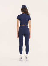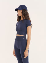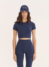 Designed for both performance and style, the Brogan crop top is your new go-to for workouts and active days. Updated in a dreamy navy hue, it has a cropped design and fitted silhouette to hug your body in all the right places, giving you freedom of movement without sacrificing support. Crafted from seamless fabric, it’s incredibly soft and smooth, while still being breathable and durable enough to keep up with your toughest routines. The short sleeves and round neckline create a flattering, classic look that pairs perfectly with the Tyler seamless leggings.