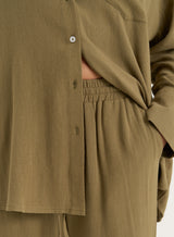 Linen trousers are a spring must have. Our Anna trousers see a tonal olive hue in a lightweight linen. Featuring a wide leg silhouette, side pockets and and an elasticated waist with tie finish, this style is the ultmate comfort peice for your transitional summer wardrobe. Finish with the Anna shirt.