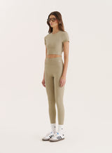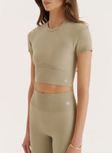 Designed for both performance and style, the Brogan crop top is your new go-to for workouts and active days. Updated in a dreamy sage hue, it has a cropped design and fitted silhouette to hug your body in all the right places, giving you freedom of movement without sacrificing support. Crafted from seamless fabric, it’s incredibly soft and smooth, while still being breathable and durable enough to keep up with your toughest routines. The short sleeves and round neckline create a flattering, classic look that pairs perfectly with the Tyler seamless leggings.