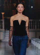 A velvet statement piece. The Celio top is a plunge-cropped corset, combining the richness of velvet with the dazzling allure, for a luxurious and lavish appearance. Perfect for parties and glamorous events simply add trousers and a heel