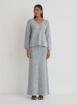 In a soft fluffy knit, the Cadence jumper is an understated addition to your knitwear collection. A relaxed, soft shape, it boasts a v-neckline and slightly slouched sleeves. Pair with the matching knitted skirt for an autumnal tonal look.