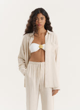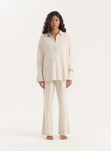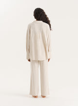 The Anna shirt is a spring staple. Designed for an elevated everyday, this oversized style see's a beige linen fabric with a button front fastening and traditional shirt features. The ultimate hybrid of comfort and style, pair with the Anna trousers and sandals for an off-duty look.
