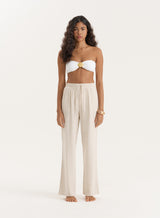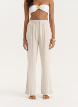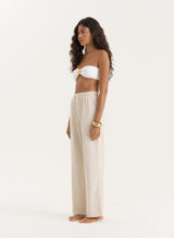 Linen trousers are a spring must have. Our Anna trousers see a tonal beige hue in a lightweight linen. Featuring a wide leg silhouette, side pockets and an elasticated waist with tie finish, this style is the ultimate comfort piece for your transitional summer wardrobe. Finish with the Anna shirt.