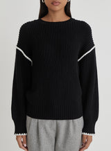 Designed in a relaxed silhouette, the Hollie black jumper is a versatile addition to your knit collection. Featuring a crew neckline, the classic design is elevated with contrast stitch detailing on the sleeves and cuffs. Wear with tailored trousers and chunky trainers for a relaxed daywear look.