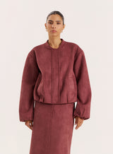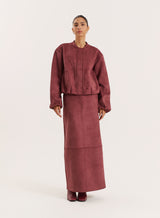 Street style influences meet polished design in the Lorna faux suede bomber. A piece that blends practicality with timeless design, it features an elasticated hem, cuffed sleeves, popper fastenings and a classic bomber-style collar. Crafted from an ultra-soft faux suede fabric, it pairs seamlessly with the Lorna maxi skirt for an elevated, off-duty look.