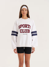 From our Life's a Sport collection, meet the Stella Sweatshirt; a varsity-inspired design that keeps you comfortable all day. Designed in a timeless white colour with contrast red and blue logo detail, this boxy silhouette offers a relaxed, effortless fit that’s perfect for layering options. Complete the outfit with our Tyler seamless leggings.