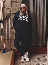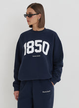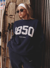 Inject a timeless colour into your seasonsal comfies with the Harley sweatshirt. In a regal navy colourway the sweat boasts a contrast printed branding with an 1850 slogan. This one is not to be missed.