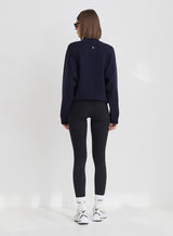 Navy Funnel Neck Branded Cropped Jumper- Valene