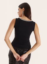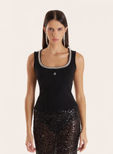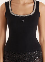 A staple addition to every partywear wardrobe, the Dixie embellished vest offers endless styling opportunities. An ultra-flattering scoop neckline is trimmed with embellished detailing and finished with 4th branded embroidery for that extra touch of elevation. In a soft, ribbed jersey material, this go-to piece pairs with jeans or your favourite party skirt and heels.