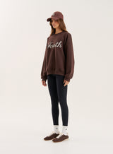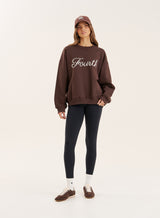 Always check thYour new staple for this season, the Amba sweatshirt runs in a rich chocolate hue to pair effortlessly with your tonal wardrobe. Designed with comfort in mind, this casual-fit sweatshirt is crafted from soft cotton, featuring a crew neckline, ribbed hem details and branded finish. Elevate your countryside walk look by pairing the Amba sweatshirt with chocolate Tyler leggings, cashmere socks and your favourite winter boots.e care label