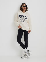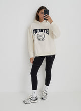 In a warn cream hue, the Harlow sweatshirt features a regal navy applique logo and ribbed hem details. Designed to enhance your everyday comfort, this oversized style is perfect for those, country style days. Finish the look with leggings and trainers.
