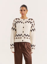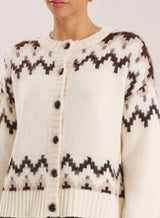 White Knitted Fairisle Button Front Cardigan- Brandon