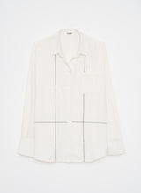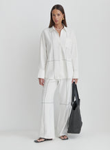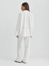 The Genevive shirt boasts a classic silhouette with traditional shirt detailing. In a summer white hue, this design see's contrasting black embroidery, putting a cool-girl twist on a summer staple. Finish with the Genevive trousers.