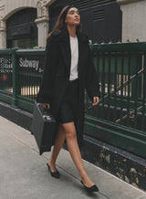 A versatile addition to your winter collection, the Anderson coat is a seasonal staple you will re-wear each year. In a staple black hue, it's cut to a longline length in an elevated tailored design. In a soft wool-like finish, it features a double-breasted button up fastening and wrap-around belt for multiple styling options.