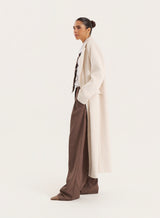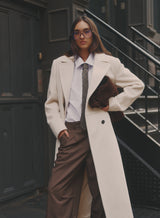 A 4th team fave, the Melia coat is an elevated everyday piece featuring a cream hue and oversized silhouette. Designed with an effortless vibe in mind, this style is crafted from a soft wool with a tailored finish . With a double breasted fastening, side pockets and maxi length you will find yourself reaching for this versatile maxi coat for seasons to come.