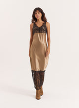 The dress that will take you from occasion season to party moments, the Smythson maxi dress is all about the detail. Crafted from a soft satin with a sheen-like finish, it's designed with an overlay lace bodice and skirt for a refined, feminine feel. With delicate contrast lace trims and a flattering v neckline, the sleeveless design falls to a body skimming fit. Simply wear with pointed heels and understated jewellery.