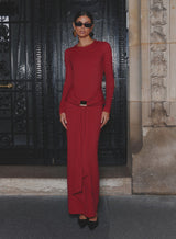 Red Jersey Hardware Waist Detail Maxi Dress- Mel