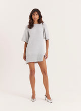 Enter party season in the Meggy sparkly dress. In a knitted sequin fabric, it's cut to a mini shift dress shape with a slit at the hem. In a boxy, t-shirt shape, it features short sleeves and a rounded boat neckline for a comfortable, effortless fit. Pair with silver accessories for the ultimate sparkle.