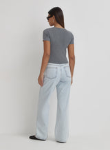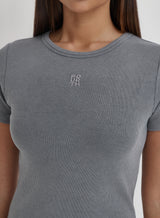 Upgrade your everyday with our Kassi top. In a timeless grey hue with an acid wash feature, this basic tee give yours wardrobe staples a style edge with elevated details in an embroidered logo and jersey rib. Pair with jeans for the full look.