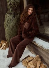 A focus on cosy fabrics, effortless shapes and versatility make the Zara fleece your ultimate winter layer this season. In a must-have chocolate brown, it features a soft teddy fabric, zip fastening and practical pockets. Featuring a statement collar, it's offset with a contrast suede-like pocket at the chest and 4th embroidery. We're styling it with brown trousers for a head-to-toe colour drench.