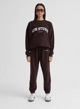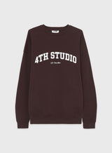 For sleek urban style, the Sera sweatshirt comes in a rich espresso colour with contrasting fourth studio slogan, combining coffee hues with contemporary branding for a modern off-duty look. A slouchy design wear casually with the Sera jogger.