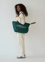 Where practicality meets style, the Josephine tote bag comes in a rich green hue with scripted branding for an elevated aesthetic. An easy open design, throw it on with your everyday looks to effortlessly compliment your outfit and make a statement.