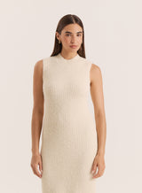 A versatile piece to dress up or down this autumn, the Gillian knitted dress comes in a neutral beige hue. A sleeveless design with a sleek high neckline, it's crafted from a soft knit fabric to a pleated A-line silhouette for a feminine finish and comfortable fit. Style with heeled leather boots and a statement autumn bag.