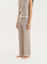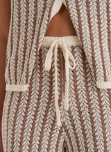 Stripes are in for summer. In a soft crochet knit, the Morgan trousers elevate your seasonal wardrobe with a retro-inspired brown stripe print. An easy, comfortable wear with a drawstring waistband, they fall to a straight leg silhouette. Wear with the matching Morgan top and head to the beach.