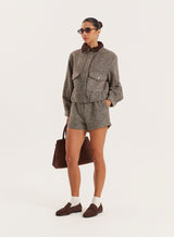 Effortless, refined and designed for layering, the Ingrid trucker offers endless styling possibilities. Reimaging the classic trucker with a contemporary twist, the Ingrid trucker is crafted from a luxe herringbone fabric with front pockets, a contrast collar and a cropped cut for a cool edge. To style, pair with the Ingrid shorts for an effortlessly co-ordinated look, or layer over your go-to autumn outfit.