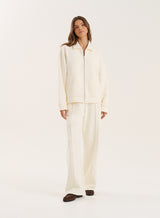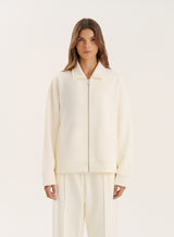 Ecru Logo Detail Zip Bomber Jacket
