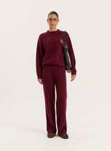 Burgundy Knitted Straight Leg Trousers- Lauren