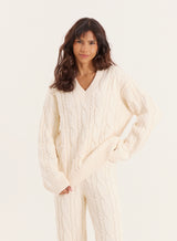 Crafted from a refined knitted fabric, the Jordan jumper offers a sophisticated take on an everyday styling piece. Comfortable yet elevated, this jumper features cosy cable knit fabric and a flattering v-neck, finished with wide sleeves and a ribbed hem. For an outfit that transitions seamlessly through every part of the day, pair with the matching Jordan trousers and accessories.