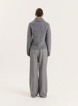 In a textured knit finish, the grey Carson cardigan is your go-to piece for autumn days. Super soft and effortless to throw on, it features a button up front with an oversized polo-style collar neckline and ribbed trims. Layer with everyday vests and staple denim.