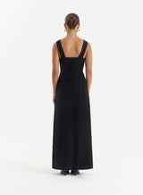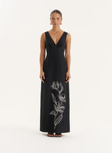 Reserved for special summer moments, the Simmi dress is the perfect choice. Featuring a maxi length with a simple v-neckline and thick straps, the black design is elevated with a contrast white floral embroidery across the skirt. We're wearing for sunset drinks, abroad weddings and everything in between.