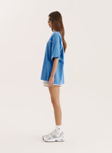In a washed ocean-blue hue, the Mia t-shirt takes you from airport lounge to morning sea dips. Crafted from a soft cotton, it's cut to a relaxed, oversized shape with short sleeves and a classic crew neckline. Subtly finished with 4th & Reckless scripting at the chest, layer with your favourite beach shorts for an afternoon poolside.