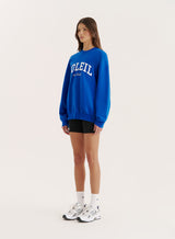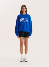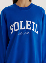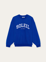 The sweatshirt of the summer has arrived. In a bright, ocean-inspired blue, the Ariana sweatshirt is crafted from a super soft cotton. Featuring long sleeves, a crew neckline and ribbed trims, it fits to a relaxed, oversized shape. Inspired by European summers, it features 'Soleil' lettering across the chest - perfect for airport outfits and throwing on after the beach.