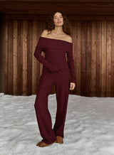Inspired by winter styling, the Emmy trousers blend comfort and sophistication. An elasticated waistband and body-skimming fit combine to give endless comfort, while a wide-leg cut offers a modern edge. For a timeless winter look, pair with the Emmy bardot top and a fur coat.