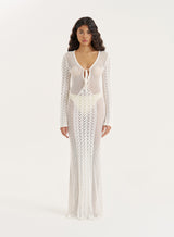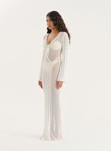Cream Knit Panelled Crochet Maxi Dress- Chloe