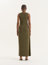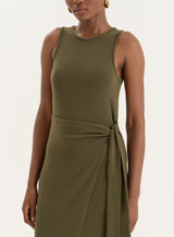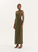 Delivering a versatile look all season, reach for the Bridie dress for special summer occasions and beyond. Made from a lightweight cotton, this sleeveless maxi design has a simple, fitted bodice and round neckline. The simple skirt silhouette is elevated with a draped wrap over design and tie detailing. Pair with heeled sandals.