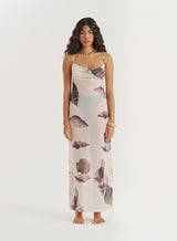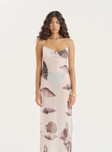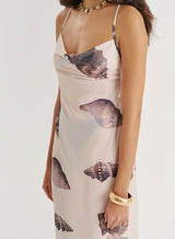 A maxi dress that captures the essence of summer. Made from a breathable mesh fabric, the Madeline dress comes in a flattering sheer design, effortlessly layered over your bikini or swimsuit by day. Complete with thin straps, a tie up cross-back detail and a straight neckline, the striking monochrome shell print is giving us all the holiday feels.