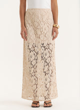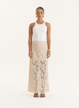 A statement summer piece, the beige Elijah skirt is crafted in a lace floral fabric to a maxi length. Complete with an underskirt for a more structured silhouette, it features an elasticated waistband for a super comfortable fit you can wear from day to evening. Keep styling simple and wear it with the everyday white vest.
