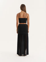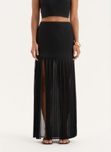 A refined summer staple, you'll be wearing the Lucian skirt on repeat all season. Sitting at a maxi length, the drop waist design boasts a fitted tailored skirt with a contrast chiffon pleated finish. It's finished with a flattering split leg and sheer floaty fabric for the ultimate summer feel. Wear with the matching crop top for an effortless co-ord look.