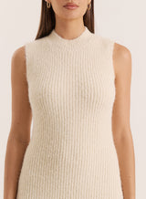 A versatile piece to dress up or down this autumn, the Gillian knitted dress comes in a neutral beige hue. A sleeveless design with a sleek high neckline, it's crafted from a soft knit fabric to a pleated A-line silhouette for a feminine finish and comfortable fit. Style with heeled leather boots and a statement autumn bag.