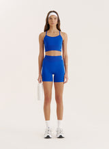 An activewear essential this summer, welcome the Kendall cycling shorts to your collection. Cut to a high waist silhouette with a ribbed waistband, the seamless active shorts are made from a sculpting Q-NOVA® sustainable yarn. Perfect for active days with their anti-bacterial and sweat wicking properties, they come in a summery blue. Wear with an active top or layer with an oversized sweatshirt for everyday errands.