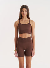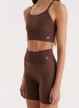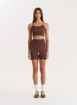 An activewear essential this summer, welcome the Kendall cycling shorts to your collection. Cut to a high waist silhouette with a ribbed waistband, the seamless active shorts are made from a sculpting Q-NOVA® sustainable yarn. Perfect for active days with their anti-bacterial and sweat wicking properties, they come in a dreamy chocolate hue. Wear with the Dua active vest or layer with an oversized sweatshirt for everyday errands.