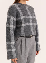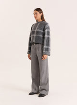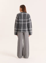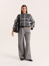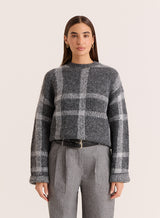 In a tonal grey check print that's perfect for autumn winter styling, the Adrian jumper is crafted from a soft knitted fabric for a cosy feel. Designed with a contrast crew neckline, it features long wide sleeves and a longline shape. Tuck into tailored trousers for an effortless office look or style with denim for off-duty days.