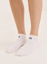 Introducing our new pilates socks, the ultimate essential for reformer pilates and mat classes. Cut to a low ankle length with ribbed trims, the grip sole gives you the perfect level of support for all active moments. They're finished with our signature 4th logo.