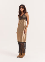 The dress that will take you from occasion season to party moments, the Smythson maxi dress is all about the detail. Crafted from a soft satin with a sheen-like finish, it's designed with an overlay lace bodice and skirt for a refined, feminine feel. With delicate contrast lace trims and a flattering v neckline, the sleeveless design falls to a body skimming fit. Simply wear with pointed heels and understated jewellery.